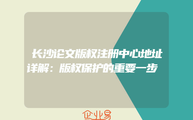 - 长沙论文版权注册中心地址详解:版权保护的重要一步