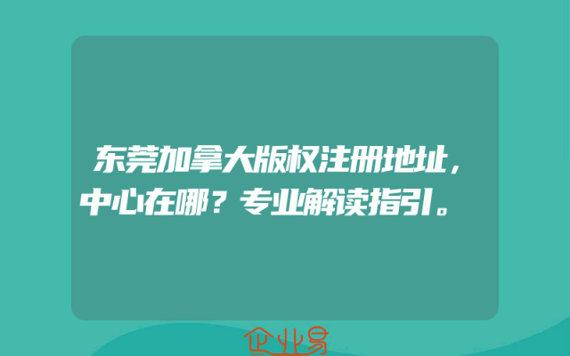 - 东莞加拿大版权注册地址,中心在哪?专业解读指引。