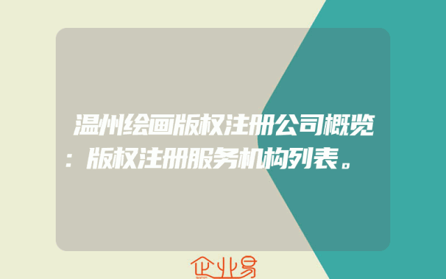 - 温州绘画版权注册公司概览:版权注册服务机构列表。