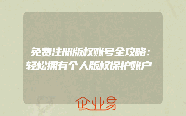 - 免费注册版权账号全攻略:轻松拥有个人版权保护账户一、了解版权保护与重要性在数字化时代,保护个人版权至关重要。无论是文字作品、艺术作品还是软件代码等智力成果,都是我们付出辛勤劳动所得。版权保护不仅有
