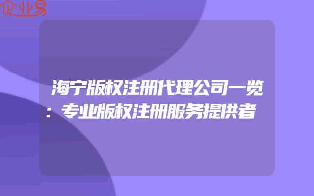 - 海宁版权注册代理公司一览:专业版权注册服务提供者