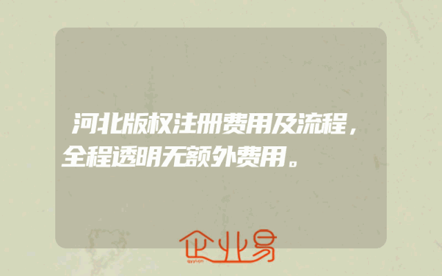 - 河北版权注册费用及流程,全程透明无额外费用。