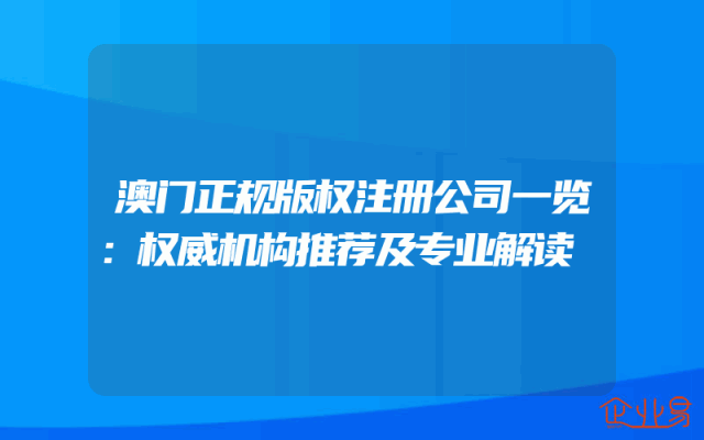 - 澳门正规版权注册公司一览:权威机构推荐及专业解读