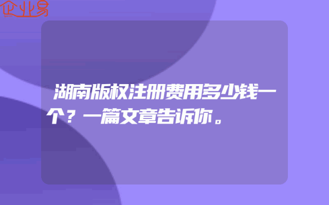 - 湖南版权注册费用多少钱一个?一篇文章告诉你。