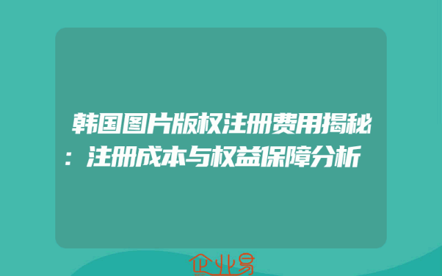 - 韩国图片版权注册费用揭秘:注册成本与权益保障分析