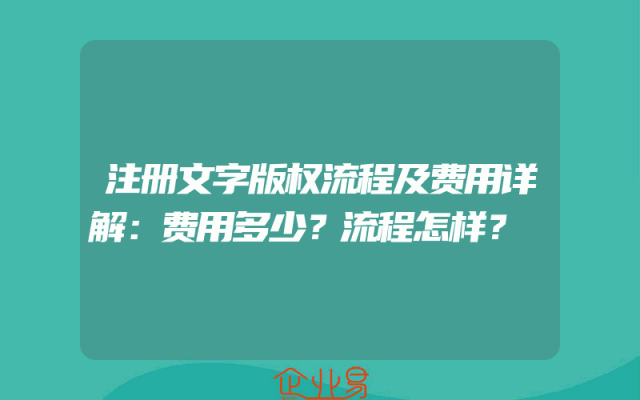- 注册文字版权流程及费用详解:费用多少?流程怎样?
