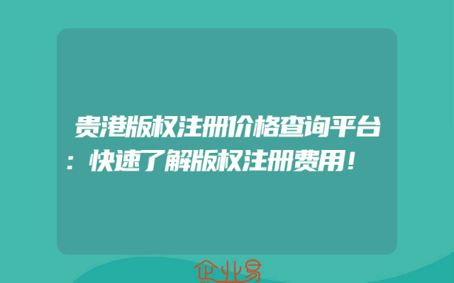 - 贵港版权注册价格查询平台:快速了解版权注册费用!