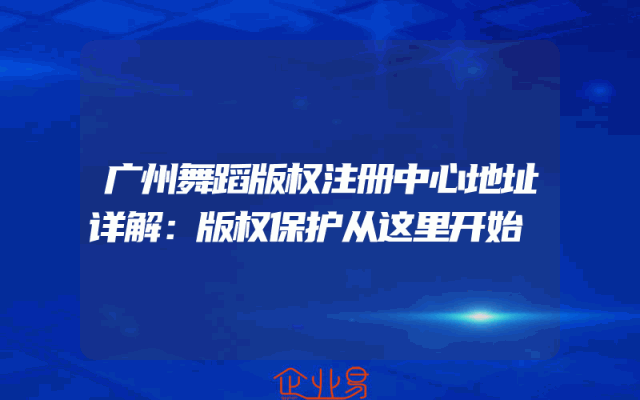 - 广州舞蹈版权注册中心地址详解:版权保护从这里开始
