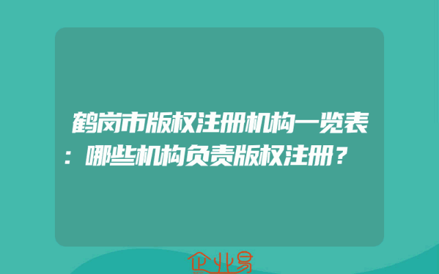 - 鹤岗市版权注册机构一览表:哪些机构负责版权注册?