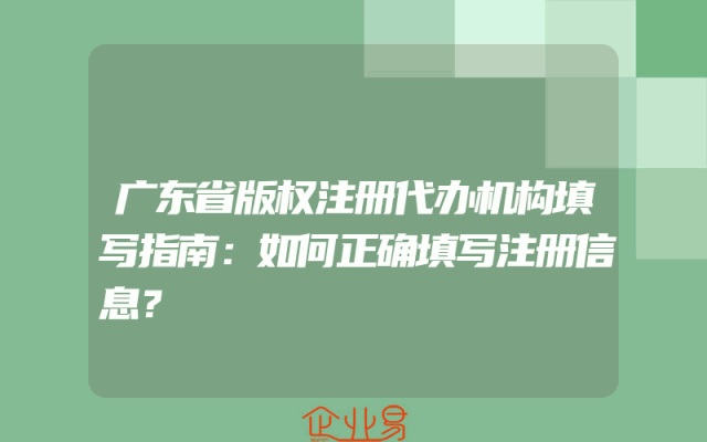 - 广东省版权注册代办机构填写指南:如何正确填写注册信息?