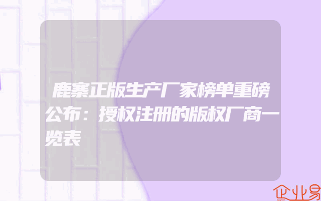 - 鹿寨正版生产厂家榜单重磅公布:授权注册的版权厂商一览表
