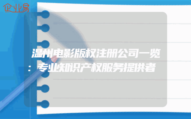- 温州电影版权注册公司一览:专业知识产权服务提供者