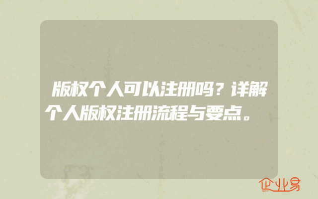 - 版权个人可以注册吗?详解个人版权注册流程与要点。