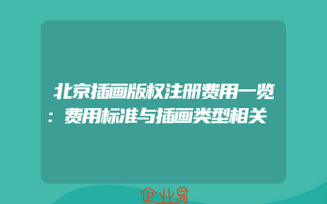 - 北京插画版权注册费用一览:费用标准与插画类型相关