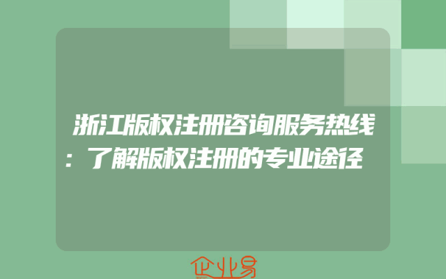 - 浙江版权注册咨询服务热线:了解版权注册的专业途径