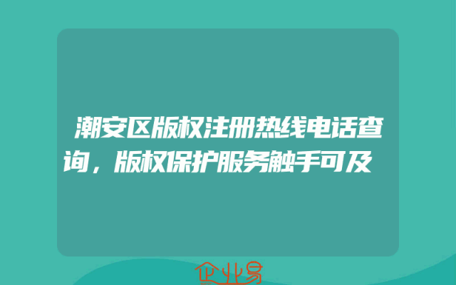 - 潮安区版权注册热线电话查询,版权保护服务触手可及