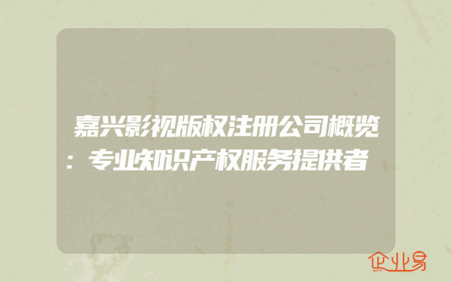 - 嘉兴影视版权注册公司概览:专业知识产权服务提供者
