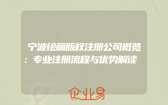 - 宁波绘画版权注册公司概览:专业注册流程与优势解读