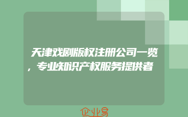 - 天津戏剧版权注册公司一览,专业知识产权服务提供者