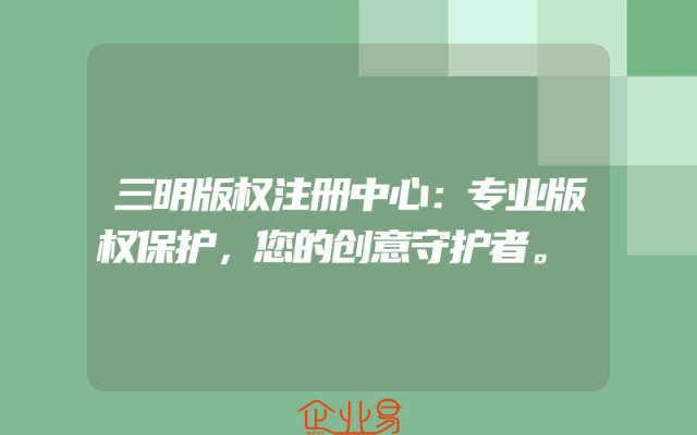 - 三明版权注册中心:专业版权保护,您的创意守护者。