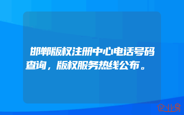 - 邯郸版权注册中心电话号码查询,版权服务热线公布。