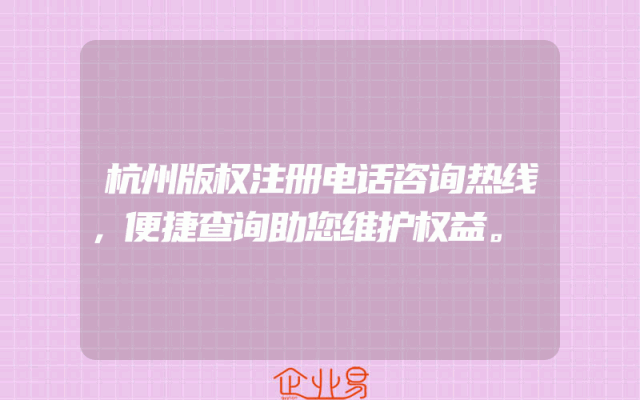 - 杭州版权注册电话咨询热线,便捷查询助您维护权益。