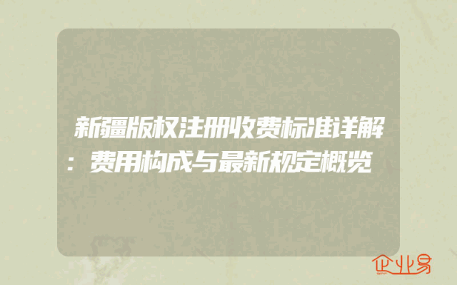 - 新疆版权注册收费标准详解:费用构成与最新规定概览