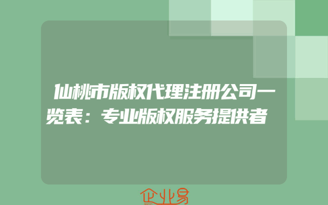 - 仙桃市版权代理注册公司一览表:专业版权服务提供者