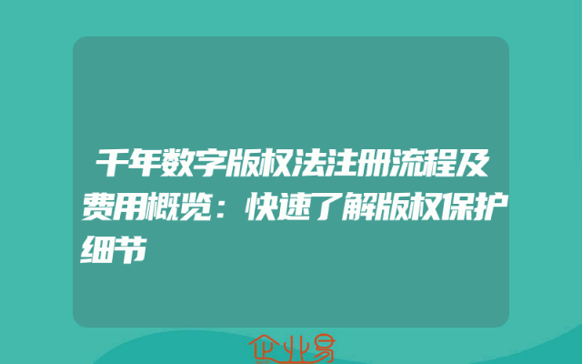 - 千年数字版权法注册流程及费用概览:快速了解版权保护细节