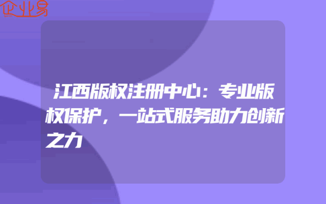 - 江西版权注册中心:专业版权保护,一站式服务助力创新之力