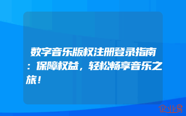 - 数字音乐版权注册登录指南:保障权益,轻松畅享音乐之旅!一、了解数字音乐版权的重要性随着数字技术的飞速发展,数字音乐已成为大众生活中不可或缺的一部分。然而,数字音乐的广泛传播和分享也带来了版权问题的重要性。音乐版权是保护创作者的创作成果不被侵