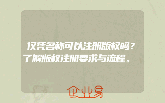 - 仅凭名称可以注册版权吗?了解版权注册要求与流程。