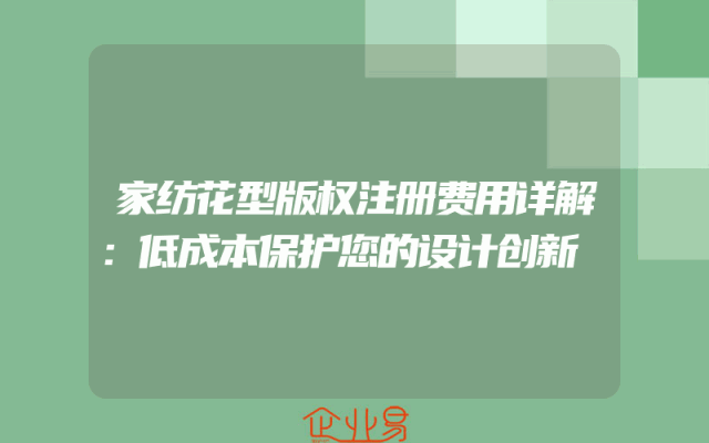 - 家纺花型版权注册费用详解:低成本保护您的设计创新