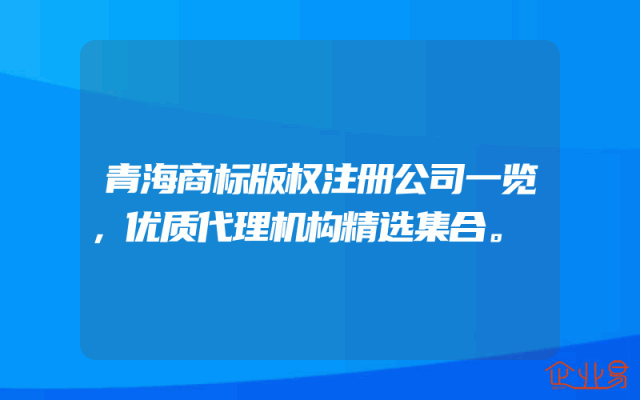 - 青海商标版权注册公司一览,优质代理机构精选集合。