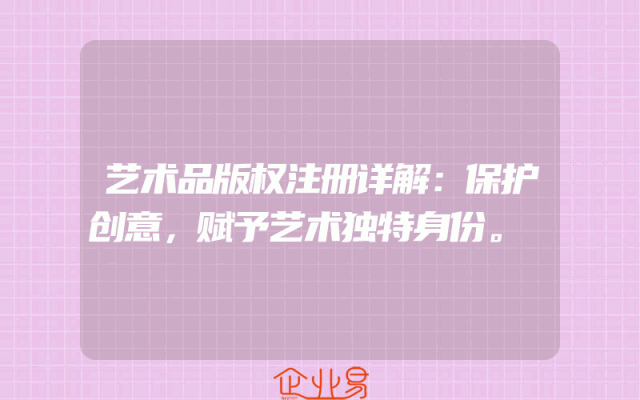 - 艺术品版权注册详解:保护创意,赋予艺术独特身份一、艺术品版权的重要性在创意产业蓬勃发展的今天,艺术品作为人类智慧的结晶,其版权保护尤为重要。艺术品版权不仅关乎创作者的劳动成果,更是对其创意和智慧的尊重。在数字化时代,艺术品的复制和传播更加便