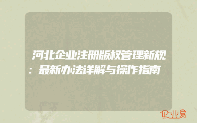 - 河北企业注册版权管理新规:最新办法详解与操作指南