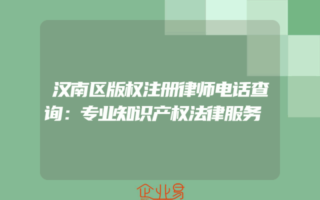 - 汉南区版权注册律师电话查询:专业知识产权法律服务