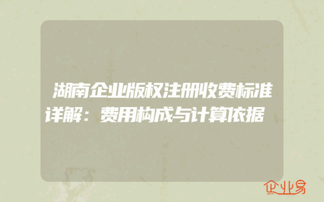 - 湖南企业版权注册收费标准详解:费用构成与计算依据