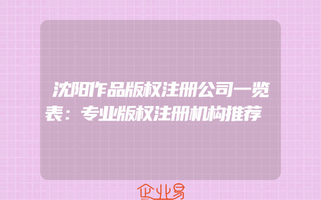 - 沈阳作品版权注册公司一览表:专业版权注册机构推荐