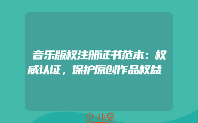 - 音乐版权注册证书范本:权威认证,保护原创作品权益