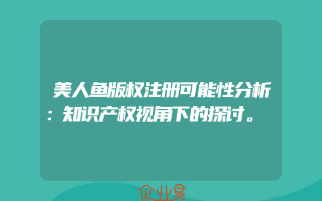- 美人鱼版权注册可能性分析:知识产权视角下的探讨。