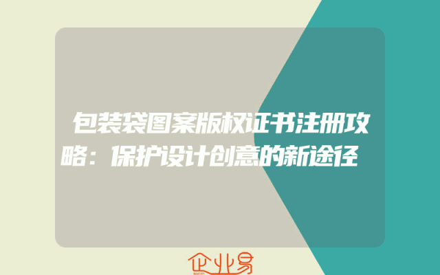 - 包装袋图案版权证书注册攻略:保护设计创意的新途径