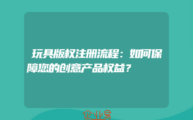 - 玩具版权注册流程:如何保障您的创意产品权益?