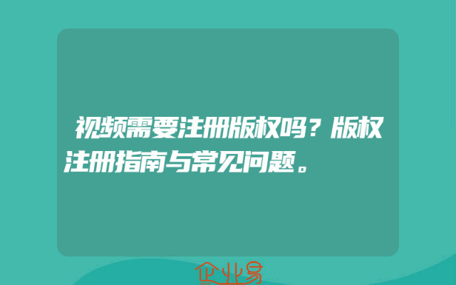 - 视频需要注册版权吗?版权注册指南与常见问题。