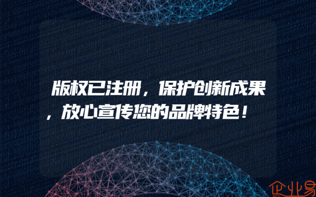 - 版权已注册,保护创新成果,放心宣传您的品牌特色!