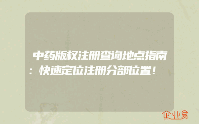 - 中药版权注册查询地点指南:快速定位注册分部位置!
