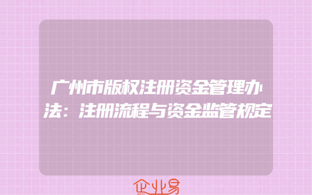 - 广州市版权注册资金管理办法:注册流程与资金监管规定