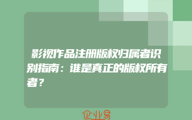 - 影视作品注册版权归属者识别指南:谁是真正的版权所有者?