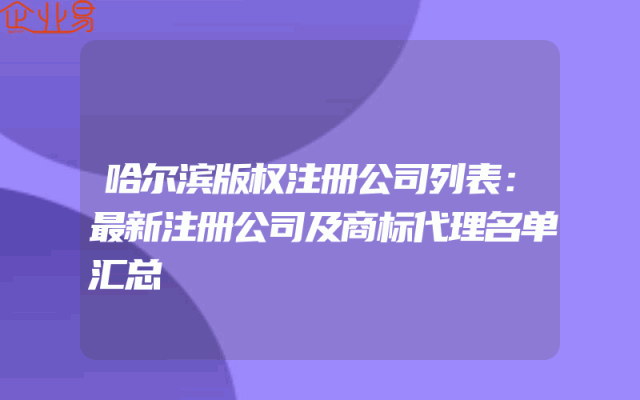 - 哈尔滨版权注册公司列表:最新注册公司及商标代理名单汇总