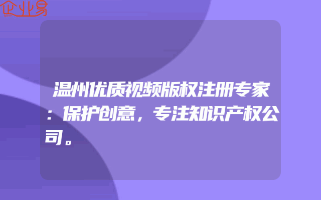 - 温州优质视频版权注册专家:保护创意,专注知识产权公司。